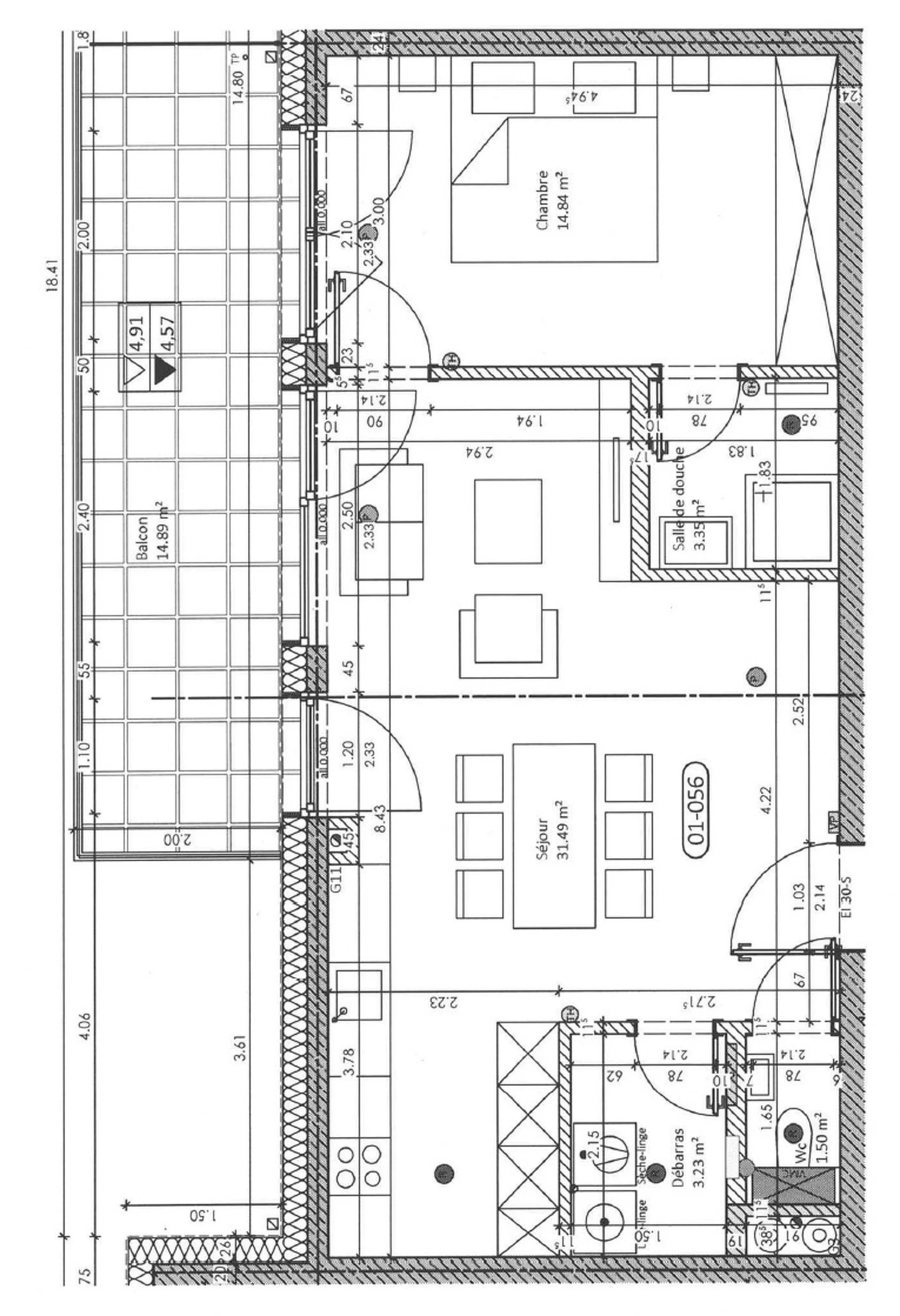 The property comprises a bright 14.8m2 living room with open kitchen leading onto a balcony, a bedroom, a shower room, a storeroom and a separate toilet.