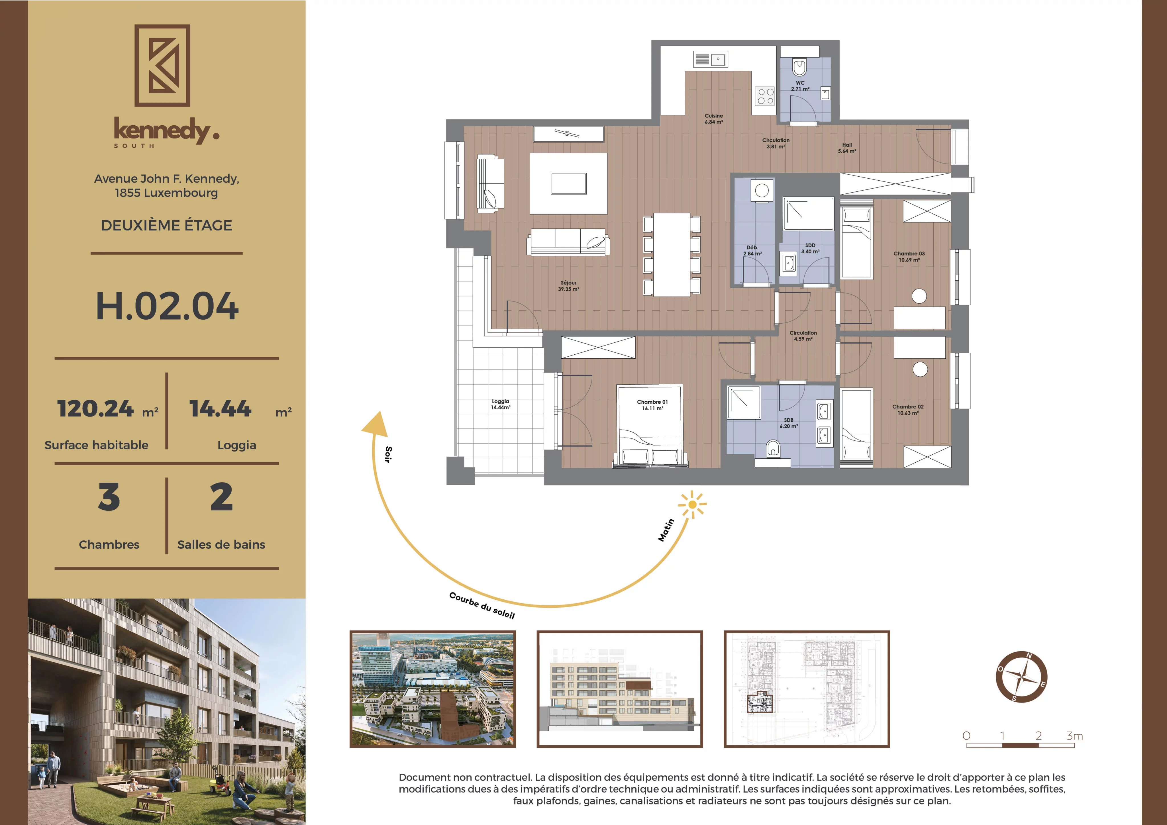 Discover this 120.24 m² apartment in Kirchberg, with a 14.44 m2 loggia opening onto the living room and one of the bedrooms.