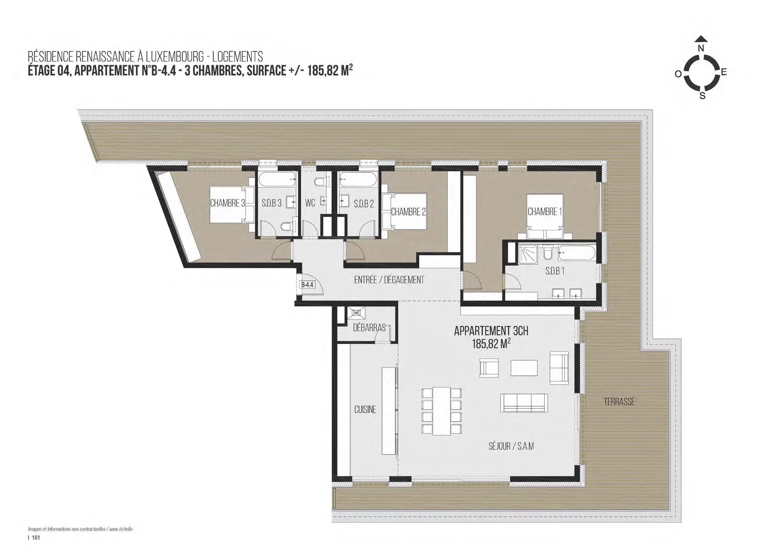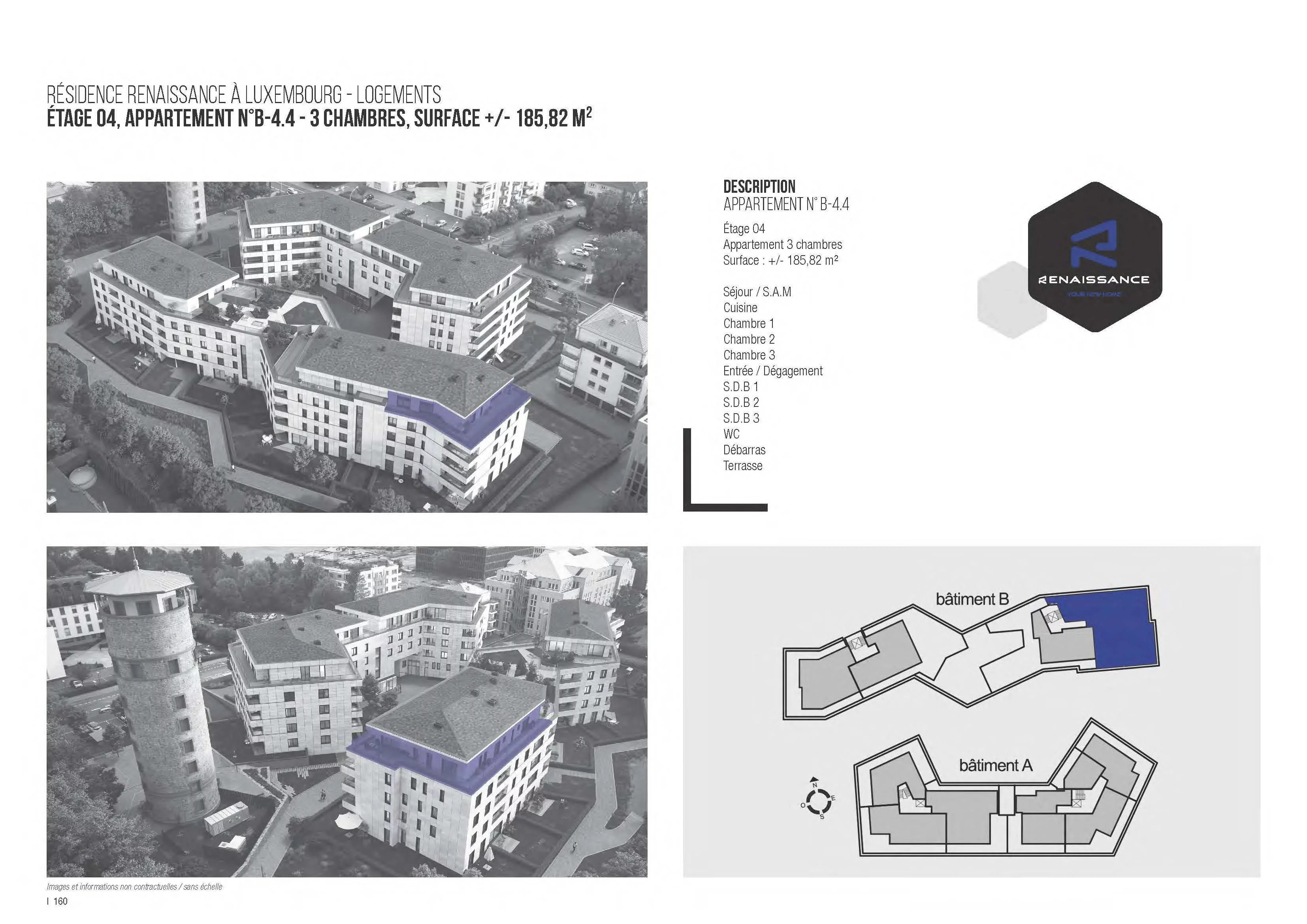 A vendre, penthouse 3 chambres au 4ème étage de la résidence Renaissance située à Luxembourg-Belair, avec une terrasse de 58m2 ceinturant le logement.