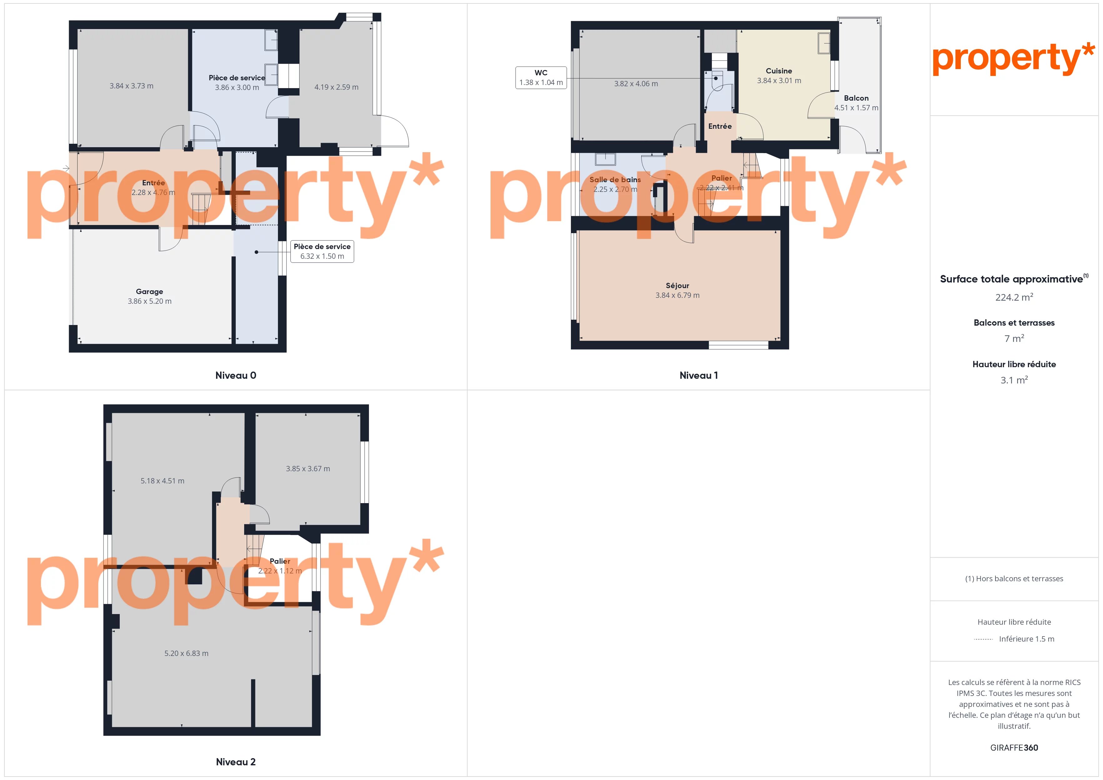 Implantée sur un terrain de 6,7 ares, la maison offre une surface totale d’environ 225 m², répartie sur trois niveaux.