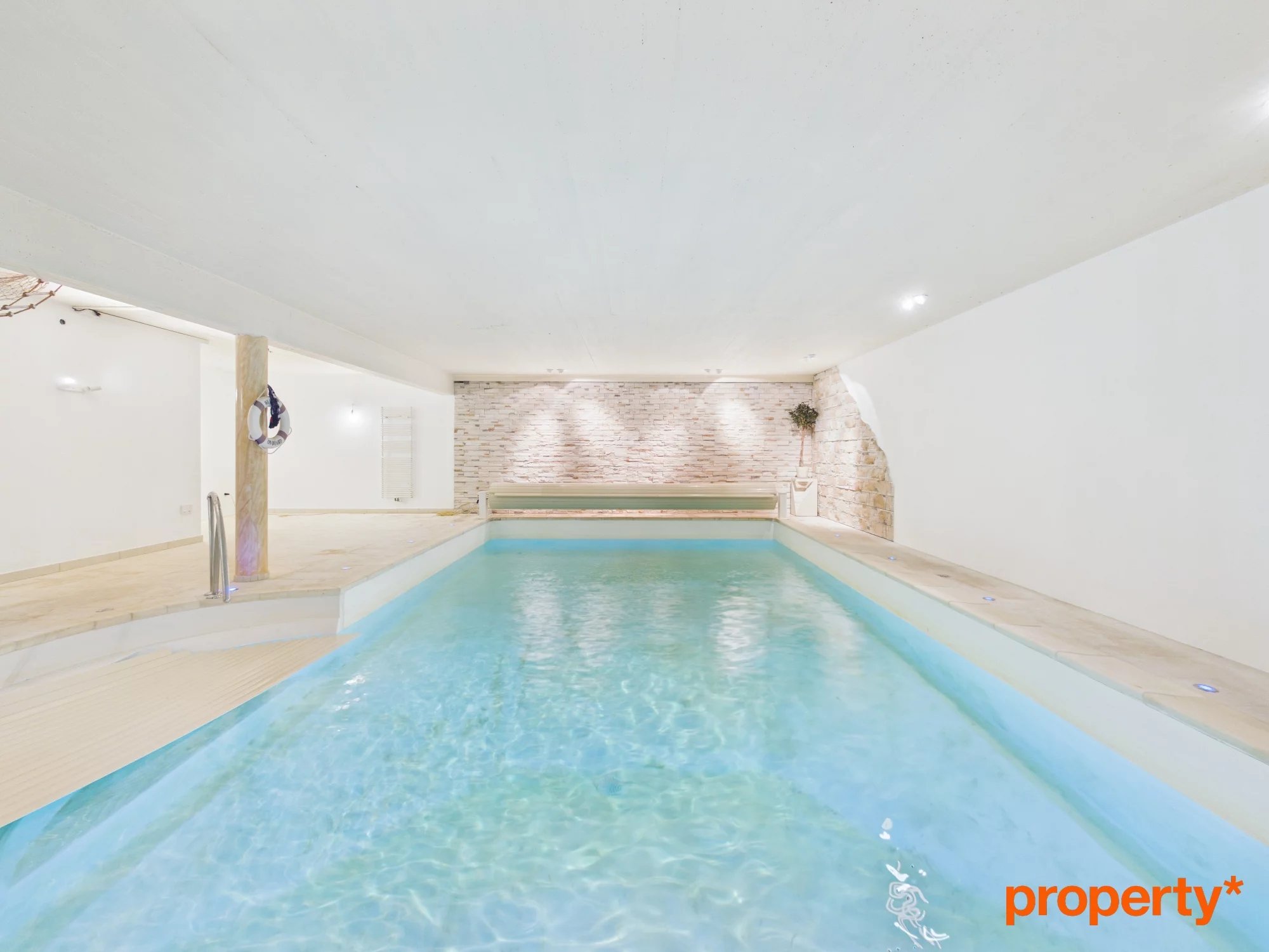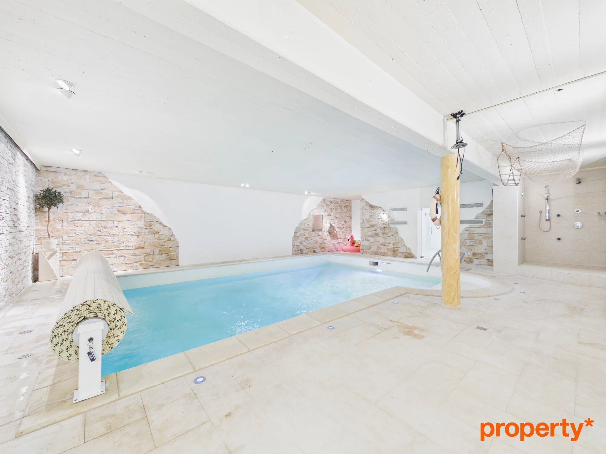 Le généreux sous-sol comporte la piscine intérieure d'environ 75m2, une chambre supplémentaire, un w.c. séparé et plusieurs caves.